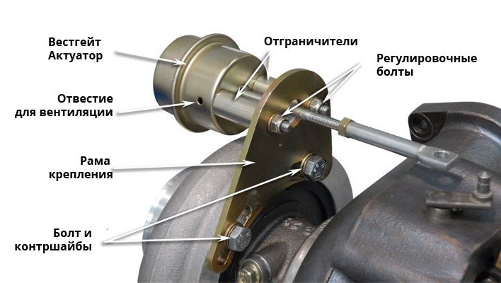 Актуатор турбины – это специальный клапан для сброса избыточного давления, его еще называют иностранным словом «вестгейт». Суть в том, что турбина нагнетает воздух в цилиндры под очень высоким давлением и актуатор следит за тем, чтобы это давление не превышало норму, не разрушая таким образом турбокомпрессор.