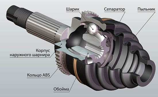 Шрус (он же граната) – это устройство так называемых равных угловых скоростей. Зачем он нужен: шрус позволяет обрабатывать углы поворота до 70 градусов без потери мощности. Отличается значительным ресурсом работы, закрывает главную задачу – передача крутящего момента на колеса с возможностью управления и вращения.