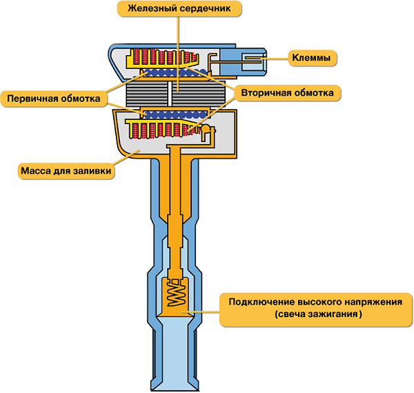 Катушка зажигания – это блок общей системы зажигания автомобиля, который отвечает за преобразование низковольтного напряжения в высоковольтный импульс в 15 000 Вольт. Цель этого элемента дать достаточный потенциал для пуска двигателя внутреннего сгорания. Катушка приводится в действие, вызывая искру в свечах, которые поджигают топливно-воздушную смесь.