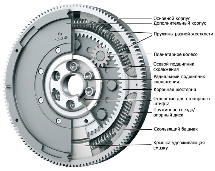 Представляет собой массивный диск размером до 40 см., который имеет на внешнем контуре зубчатую поверхность, чтобы иметь лучшее сцепление с валом стартера.